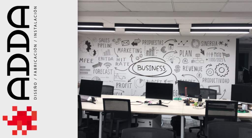 Instalamos laminas gráficas adhesivas con diseño personalizado, que puede aportar usted o nosotros preparamos un diseño para su lugar de trabajo o de descanso.